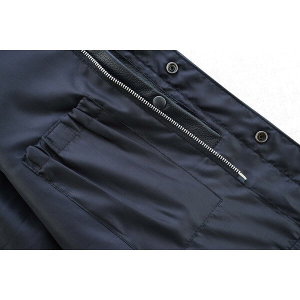- Front zipper hidden under snap-placket blocks wind & rain.