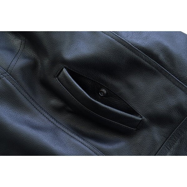 - 2 upgraded style concealed gun pockets between the snap and the zipper made of special heavy-duty textile with built-in holsters and snap closure.