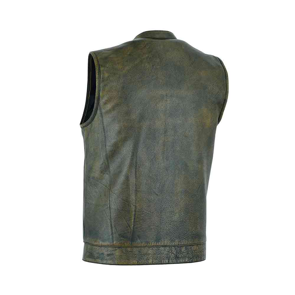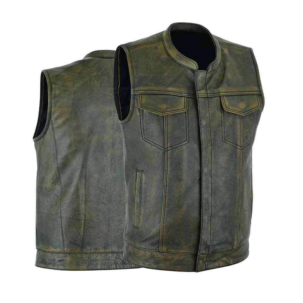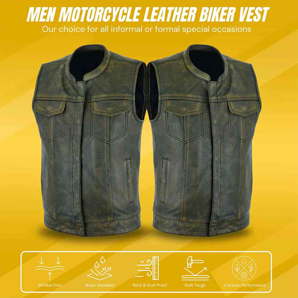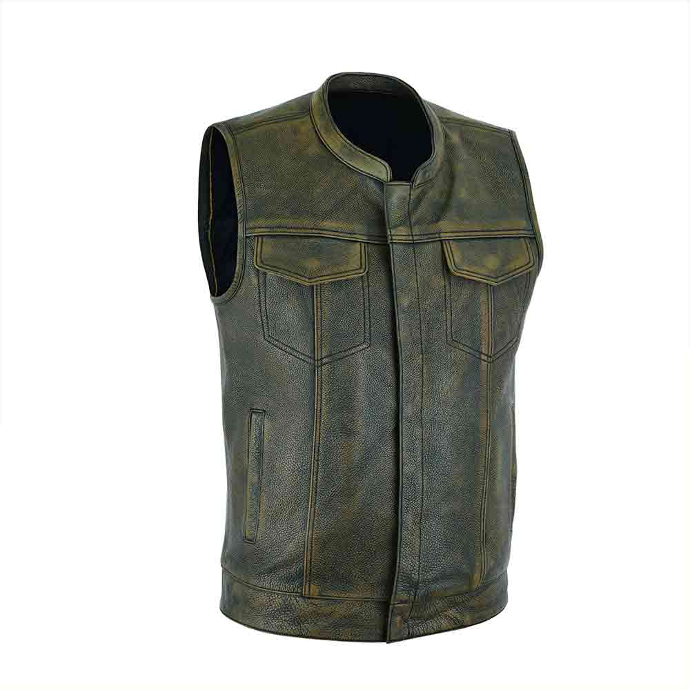 Designed with the modern rider in mind, this men’s SOA-inspired leather vest blends traditional motorcycle aesthetics with practical functionality. The club-style cut provides a streamlined silhouette that fits comfortably over hoodies, flannels, or riding jackets. The sleeveless design ensures unrestricted arm movement for maximum control on the handlebars.