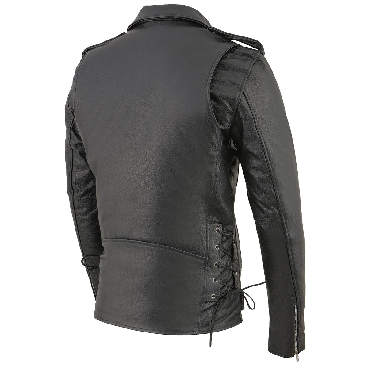 ML Men's Classic Brando Motorcycle Leather Big Tall Jacket w/ Side Lacing