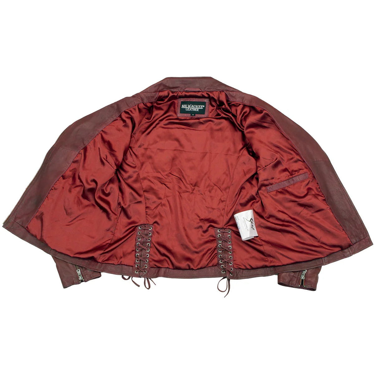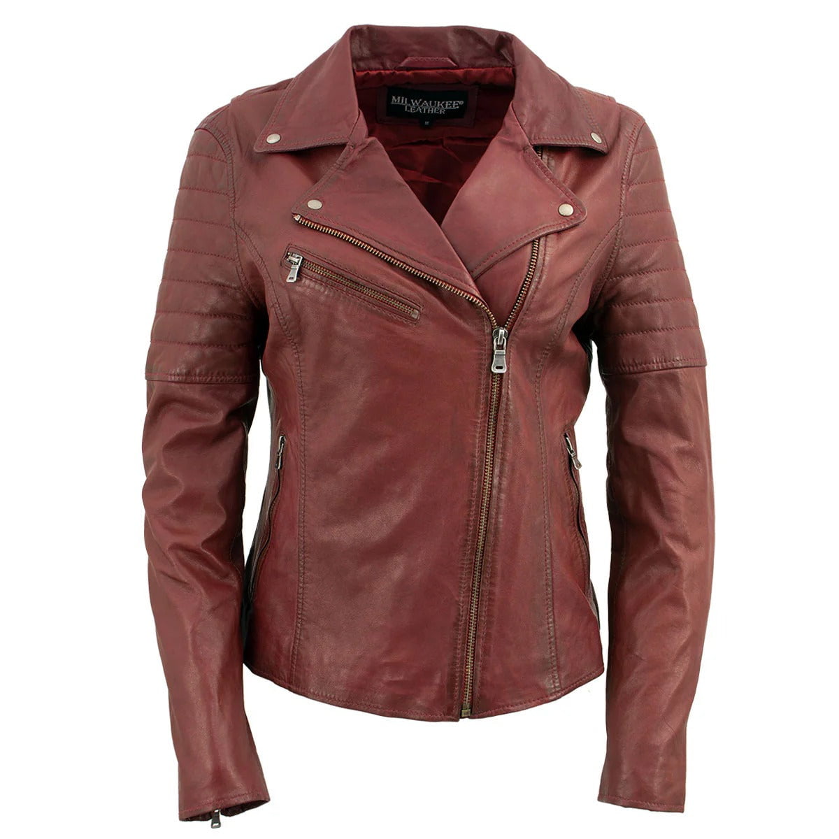 ML Women's Red Vintage Motorcycle Style Fashion Leather Jacket